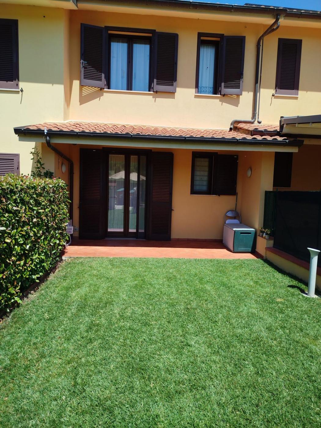 Questa casa vacanze ha 3 camere da letto, 2 bagni, lenzuola, asciugamani, una TV a schermo piatto, una zona pranzo, una cucina con utensili e una terrazza con vista sul giardino.